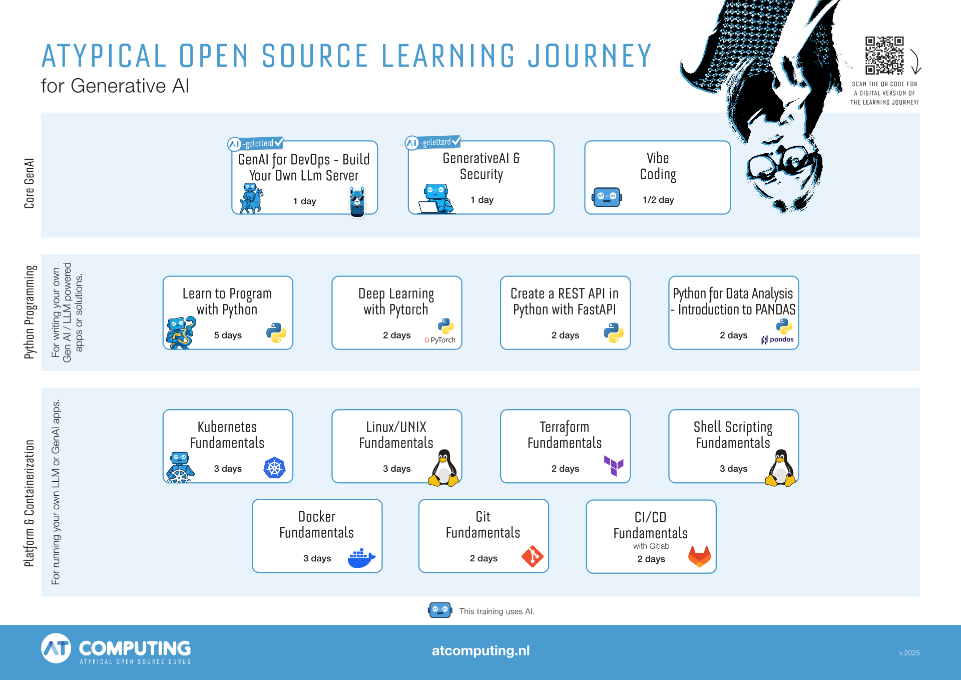 Deze workshop is geschikt voor o.a. software developers, testers, DevOps- en Cloud-Engineers, systeembeheerders, data engineers en data analisten die de werking en kracht van LLM's volop willen benutten in hun dagelijks werk.